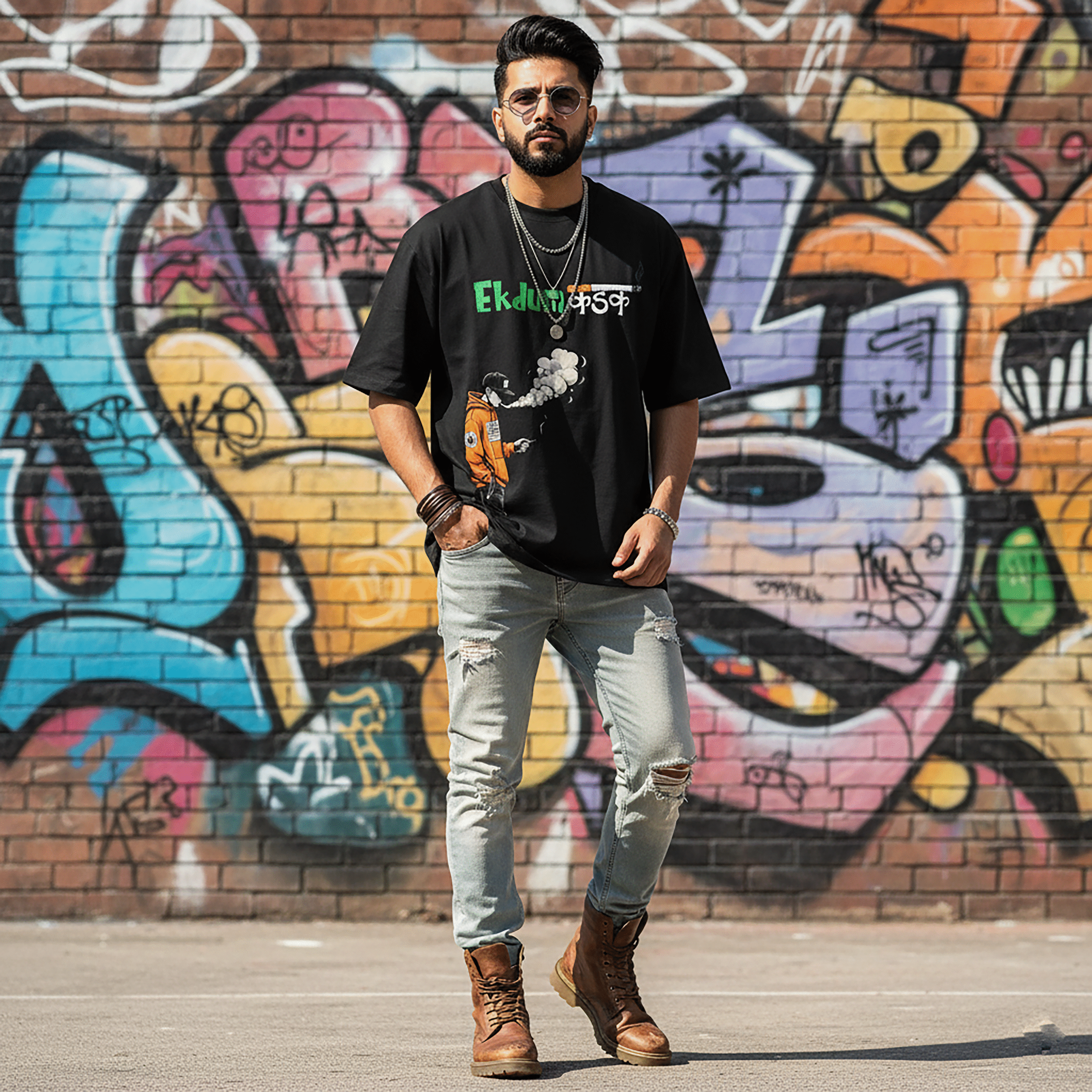 Upgrade your wardrobe with the Ek Dum Kadak Black Oversize T-Shirt for Men — the perfect blend of luxury, comfort, and streetwear style. Made from premium 240 GSM French Terry fabric, this heavy-weight t-shirt delivers a soft, rich texture and unmatched durability.